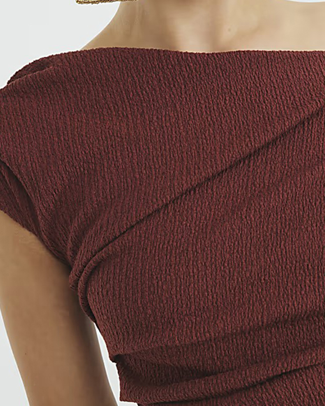 Cotton-Feel Skin-Friendly Off-Shoulder Design Women'S Short-Sleeved 55181055