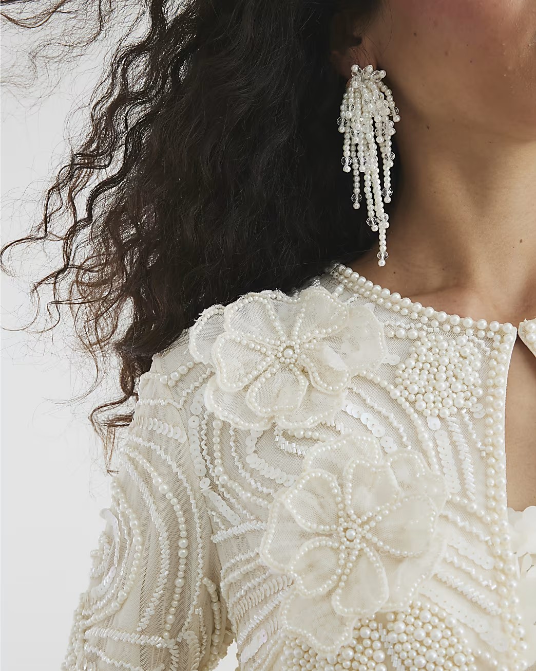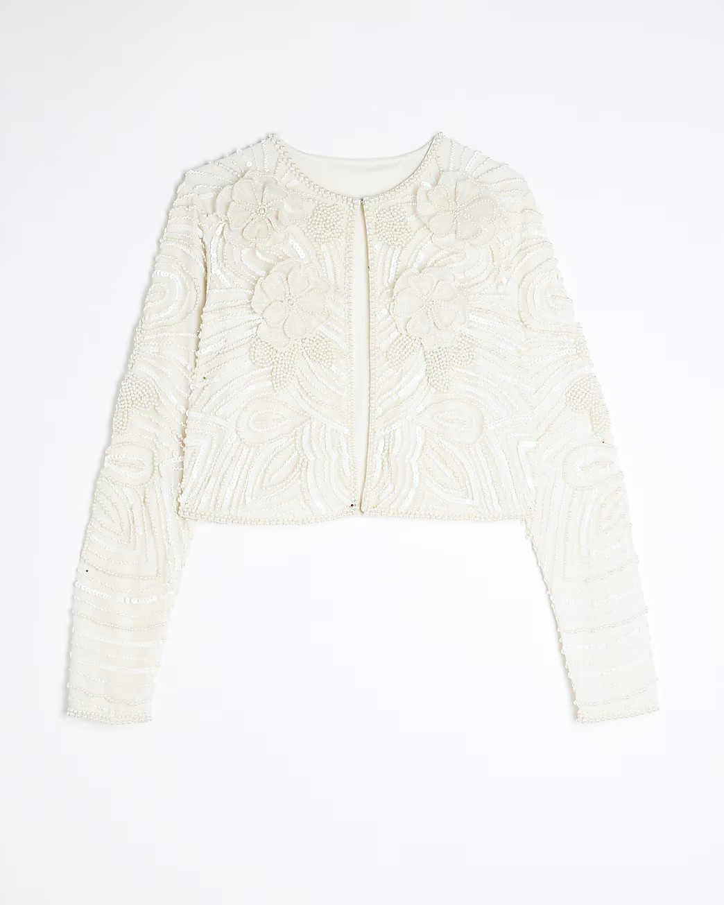 Luxury Pearl Flower Design Women's Crew Neck Tops 55182217
