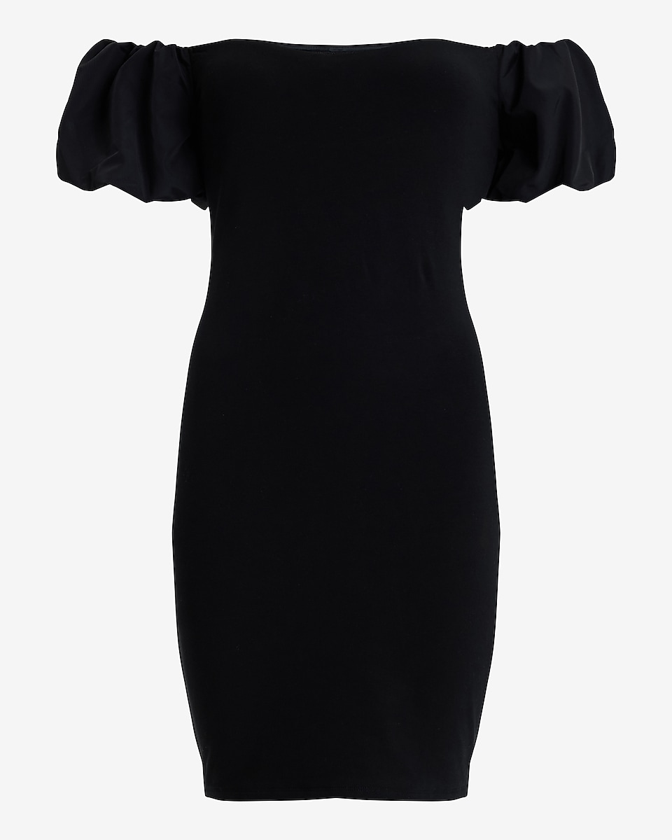 Off The Shoulder Puff Sleeve Sheath Mini Dress 55182481