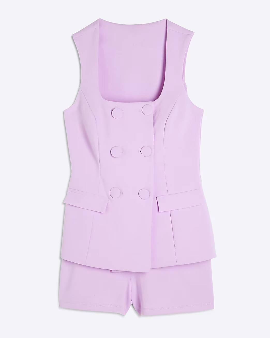 Purple Sleeveless Square Neck Multi-Breasted Short Bodysuits 55181404