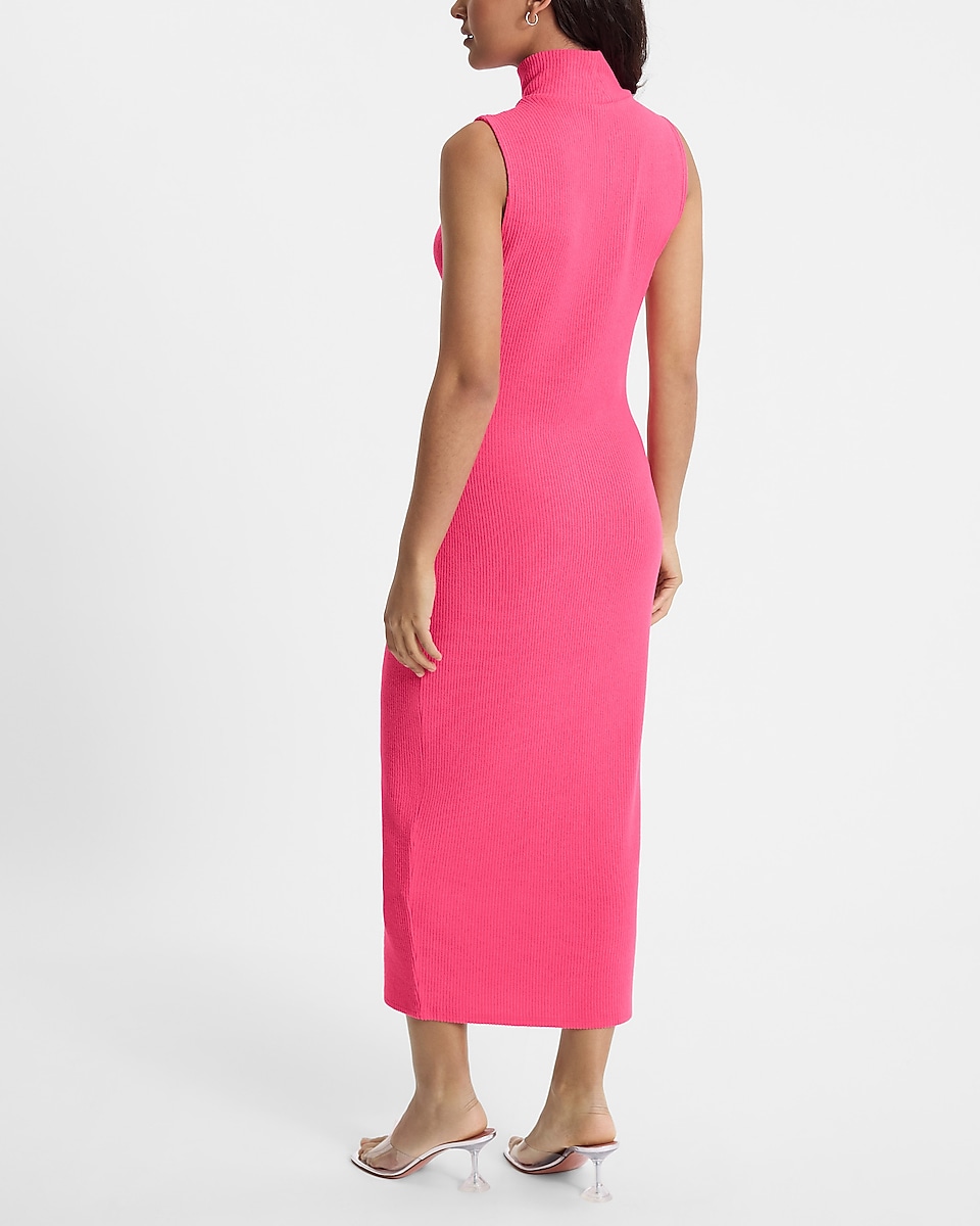 Ribbed Sleeveless Mock Neck Midi Dress 55182491