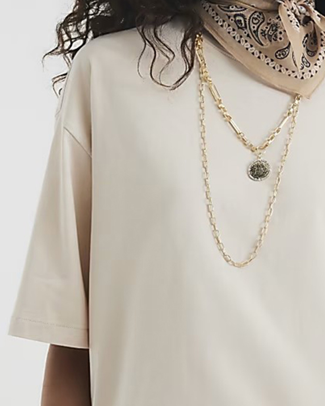 Solid Color Simple Pure Cotton Loose Short Sleeves T-Shirts 55181051
