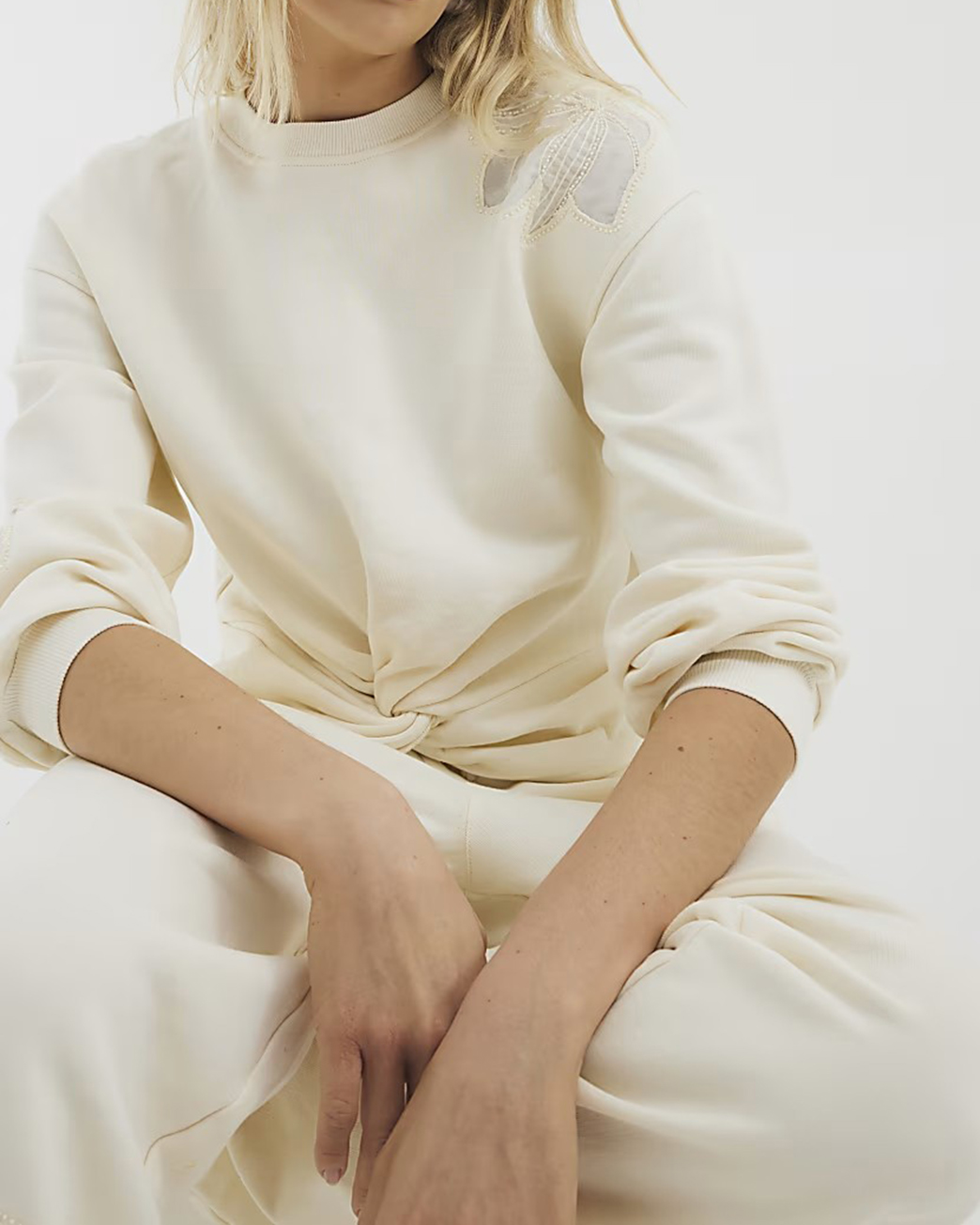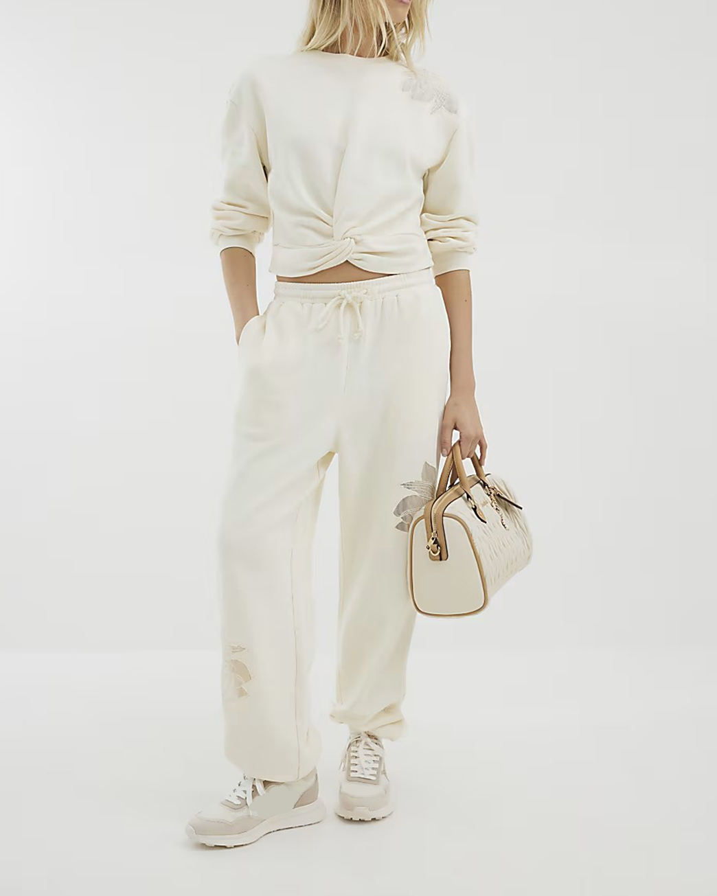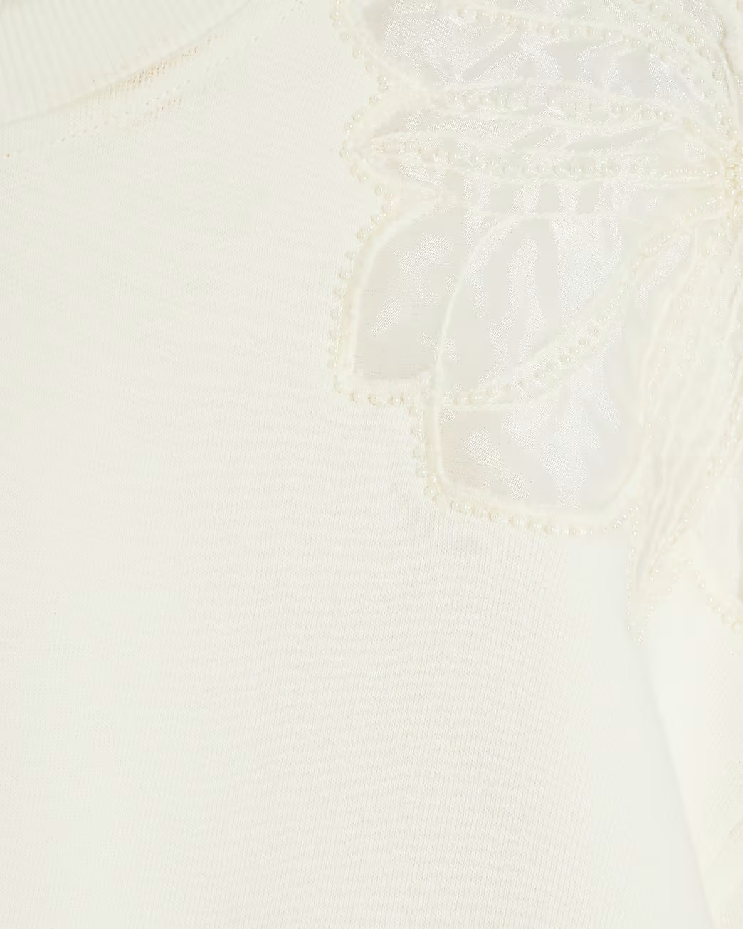 Women's Cotton Cream Floral Pattern Sweatshirts 55182390